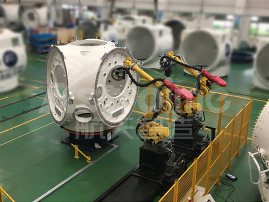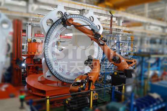 航天智造研制的液壓扳手機(jī)器人智能螺栓緊固系統(tǒng),可滿足風(fēng)電輪轂和風(fēng)電底座的螺栓裝配的精度和工藝數(shù)據(jù)提取分析,提升生產(chǎn)效率40%以上,解決風(fēng)機(jī)由于螺栓緊固數(shù)據(jù)穩(wěn)定性質(zhì)量百分之百合格全檢數(shù)據(jù)記錄分析,同時(shí)可以在訂單負(fù)荷大的時(shí)候?qū)崿F(xiàn)生產(chǎn)作業(yè)全天候進(jìn)行,徹底做到了解放人力,提高生產(chǎn)效率,為穩(wěn)定產(chǎn)品質(zhì)量提供了強(qiáng)有力的支撐。