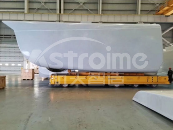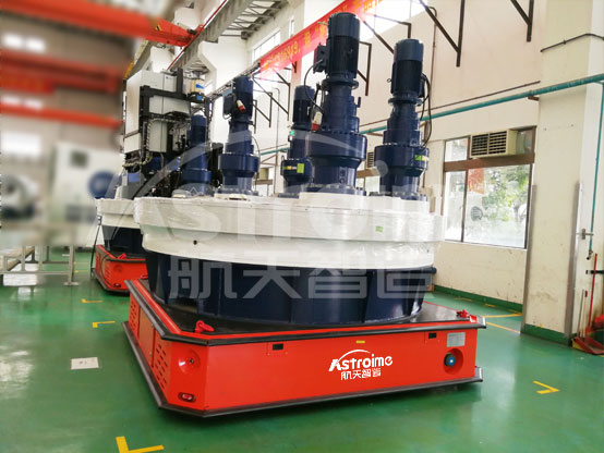 航天智造為某風(fēng)電企業(yè)研制的200噸全向舵輪AGV,載重量大、轉(zhuǎn)向靈活、定位精度高、操控方便,滿足客戶大型風(fēng)電的運(yùn)載要求。
