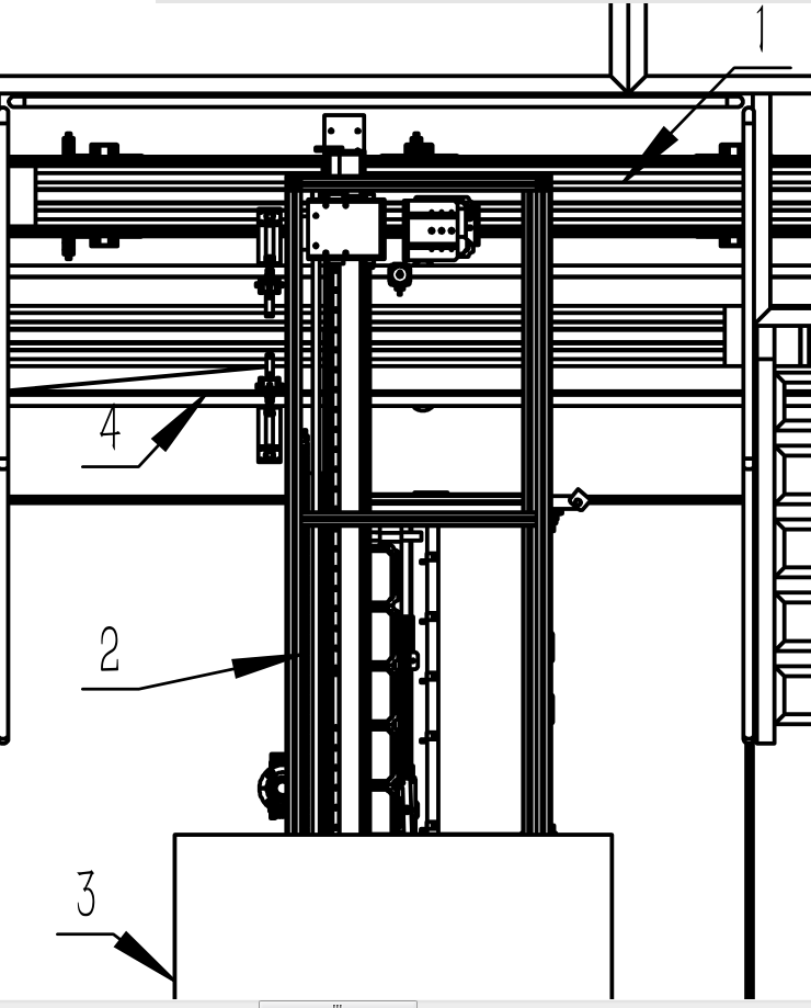 設(shè)計(jì)輸入前置條件 硅片每一刀料是一個(gè)料號(hào)含有物料的型號(hào)身份信息,一刀料約3200片, 4個(gè)載體治具進(jìn)行承載。特定型號(hào)硅片需在對(duì)應(yīng)清洗機(jī)設(shè)備中進(jìn)行清洗。設(shè)備動(dòng)作流程:上料機(jī)械手將清洗機(jī)空載體治具抓取放置在空治具回流線體。滿載硅片治具通過輸送線體(帶水輸送線)輸送到清洗機(jī)臺(tái)擋停,識(shí)別。機(jī)械手到輸送位抓取,再次判定確認(rèn)載體治具的硅片滿足清洗型號(hào)設(shè)定條件。上料機(jī)械手優(yōu)先放置在清洗機(jī)空置的上料位(為雙上料工位)。若清洗機(jī)上料工位有料,放置緩存料箱。整個(gè)流程確保清洗機(jī)不停機(jī)待料。 設(shè)計(jì)思路及措施 硅片載體治具和上下料機(jī)械手兩部分裝置作用和貫穿于輸送、緩存、清洗分片、空治具回流輸送等系統(tǒng),為重要設(shè)計(jì)要素。 硅片治具載體設(shè)計(jì),從硅片分裝、信息記錄、輸送、機(jī)械手抓取、清洗機(jī)分片、空治具回流作為載體。設(shè)計(jì)中首先確保清洗分片的定位,傾角功能。治具承載能力滿足一刀料約800片的容量和負(fù)載。設(shè)計(jì)安裝RFID芯片記錄刀號(hào)信息,設(shè)計(jì)符合輸送截停阻擋功能接口。設(shè)計(jì)治具載體有上下料機(jī)械手夾爪抓取位置。 機(jī)械手設(shè)計(jì),從硅片滿載治具的輸送、緩存、清洗分片位的上料、空治具回流等實(shí)現(xiàn)承上啟下的轉(zhuǎn)序功能。機(jī)械手設(shè)計(jì)橫移行程覆蓋各功能模塊區(qū)域,垂直提升、降滿足各高度要求。機(jī)械手設(shè)計(jì)滿載治具承載力20Kg,結(jié)構(gòu)穩(wěn)定、可靠。垂直提升選用帶抱閘伺服電機(jī)。橫移行程覆蓋空治具回流線,滿載輸送線,緩存線、清洗分片上料位區(qū)域,機(jī)械手運(yùn)行平穩(wěn),無爬坡,抖動(dòng)現(xiàn)象。橫移采用型材鋼加工安裝導(dǎo)軌,伺服電機(jī)帶減速機(jī)驅(qū)動(dòng),皮帶輪傳動(dòng)。抓取中保證治具不變形,不能對(duì)產(chǎn)品造成2次損傷。在抓取過程判定確認(rèn)物料信息是否滿足清洗的目標(biāo)要求。滿載治具的輸送線體, 治具緩存裝置,空治具回流輸送線體設(shè)計(jì)高度統(tǒng)一,方便編程和調(diào)試。 02 機(jī) 構(gòu) 設(shè) 計(jì) 上下料機(jī)械手作用和貫穿于輸送、緩存、清洗分片、空治具回流輸送等系統(tǒng),完成各個(gè)功能模塊的硅片治具的上下料轉(zhuǎn)序。俯視圖如圖一所示: