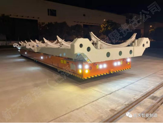 航天智造(上海)科技有限責任公司提供的純電動重載全機運輸車,可承重18噸,全長15米,是公司在智能移動平臺領(lǐng)域的長度之最,標志著公司在差速輪式車項目上的再次突破。整車六組驅(qū)動運行平穩(wěn)、升降功能數(shù)值正常、各功能模塊指標穩(wěn)定、現(xiàn)場負載測試無異常,最終驗證整車滿足技術(shù)要求。此次重載全機運輸車加入視覺自動導引技術(shù),導航精度小于5毫米,精確定位精度小于5毫米,具備超靜音使用,超精度使用,高智能使用等優(yōu)點。