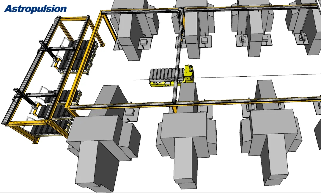 組成:AGV+桁架式三坐標(biāo)機(jī)械手+緩存線+調(diào)度系統(tǒng);